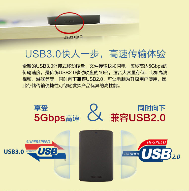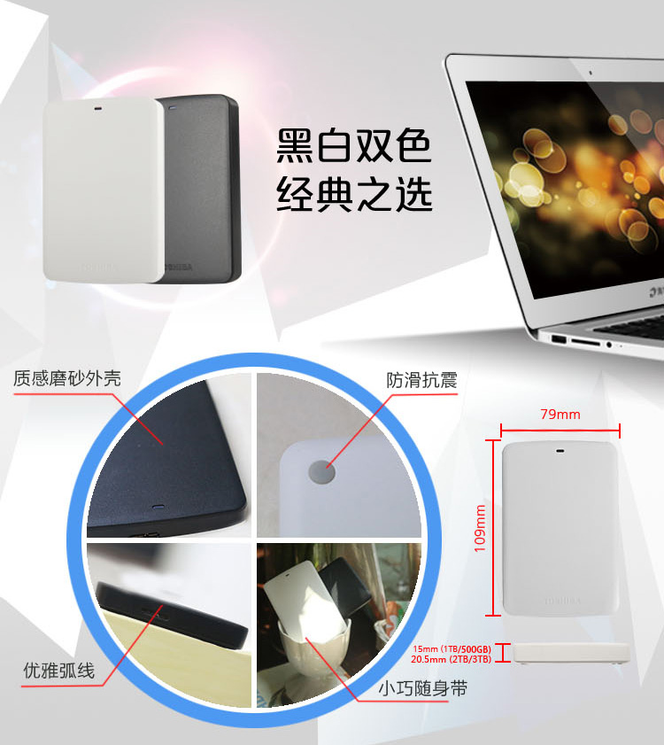 • 东芝(TOSHIBA)新黑甲虫系列 1TB 2.5英寸 USB3.0移动硬盘